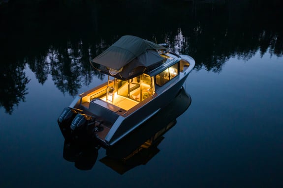 Imagine anchoring in a secluded cove, deploying your carbon fiber rooftop tent, and settling in for the night with panoramic water views. The Defender 22 offers a unique on-the-water camping experience that eliminates the need to look for a campsite ashore. Simply drop anchor, set up the tent, and enjoy a night under the stars, surrounded by the gentle lapping of waves.