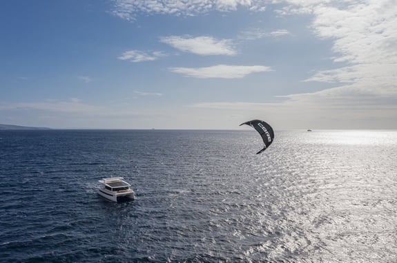 Catamarans' lightweight and streamlined shape reduce drag, allowing them to achieve higher speeds and longer ranges on electric power alone. With two slender hulls cutting through the water, energy consumption is minimized compared to the larger wetted surface area of traditional monohull yachts. This efficiency is further enhanced with the addition of solar panels on the expansive deck space, providing ample opportunities for renewable energy generation to extend cruising ranges.