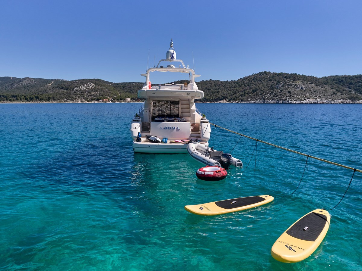 LADY L is a 19.5m (64') 2006 LADY L available for charter. Prices range from $20,625 to $23,572 Per Week. Accommodation up to 8 guests. The 64ft/19.5m Altamar 64 motor yacht Lady L was built in 2006 and she has been through an extensive refit program in 2021-2022. M/Y Lady L offers stylish cruising for up to 8 guests with comfortable overnight accommodation in 4 staterooms. Her interior layout includes two double cabins, one twin cabin and one twin with bunk beds, all with private ensuite facilities. She is managed by a qualified crew of 3 willing to satisfy guests needs and wants. The exterior living areas offer a sunbathing space on the foredeck and a seating area on the fly bridge offered for an alfresco dining surrounded by marvelous scenery. From the fine modern lines of the exterior to the spacious interior in combination with her performance, Lady L is an ideal yacht for daily cruises or long weekend charters. Oriented for families or friends who would desire to explore sandy beaches, small bays and coves less reachable from larger yachts. Contact us to receive more charter details of the 19.5m (64') LADY L available for charter today!
